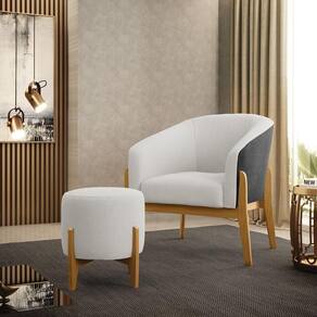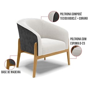 A Poltrona Stella é a combinação perfeita de conforto, elegância e modernidade. Seu design curvo e marcante oferece uma sensação única de aconchego, como um abraço acolhedor, tornando-se a peça ideal para compor sua decoração com estilo e sofisticação. Revestida em Sintético PU Preto com Bouclê Off White, a poltrona traz o toque da tendência atual. Seja na sala de estar, quarto ou escritório, ela se adapta com facilidade. Sua estrutura robusta é sustentada por uma base de madeira (fixa), unindo resistência e design contemporâneo. A tendência desse estilo minimalista ganha destaque, conferindo sofisticação ao móvel, que é perfeito para qualquer espaço que exija funcionalidade e bom gosto. Com enchimento em espuma D-23 no encosto e assento, o kit Poltrona Stella garante o máximo de conforto, mesmo em longos períodos de uso. O conjunto, acompanha um lindo puff que é ideal para você apoiar os pés, garantindo descanso absoluto. Além desse modelo, também temos várias opções em base/pés e uma grande variedade de tecido/cores para atender ao seu estilo e conforto. E para deixar seu ambiente ainda mais harmonioso, oferecemos também kits especiais no mesmo design. Caso queira ajuda para escolher a melhor opção para o seu espaço, estamos à disposição!
