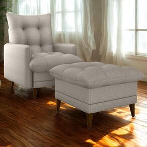 Conjunto Poltrona com Puff Montreal combina conforto e funcionalidade, composto por duas peças ideais para momentos de descanso ou amamentação. A poltrona conta com sistema reclinável de dois estágios (modo leitura e descanso), estrutura em madeira de Eucalipto de reflorestamento reforçado com precintas elásticas, assento e encosto preenchidos com fibra siliconada e flocos de espuma (assim como o Puff), braças em espuma D23 e revestidos em tecido Plano Milenum (linho misto: resistente, levemente texturizado e de visual contemporâneo). Os pés também em madeira, suportando até 110 kg por assento. Este móvel chegará em sua casa separado em 01 volume.