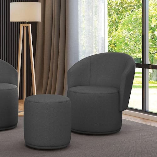 Poltrona E Puff Redondo Orgânico Para Sala Malu Bouclê Grafite M11 - D'rossi