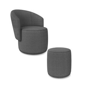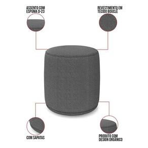 Poltrona E Puff Redondo Orgânico Para Sala Malu Bouclê Grafite M11 - D`rossi - Cinza