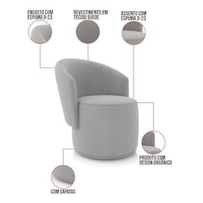 A Poltrona e Puff Malu é um conjunto que combina segurança, conforto e durabilidade. Ele tem um design orgânico que remete às formas encontradas na natureza oferecendo uma sensação de calma e equilíbrio criando um espaço acolhedor e relaxante. Além da sua simetria artística e curvas suaves, ela contém um revestimento em Suede que harmoniza com qualquer ambiente. Além disso, acompanha um puff lindo e confortável, perfeito para diversos ambientes e usos, garantindo ainda mais praticidade e estilo ao seu dia a dia. Este lindo kit ser utilizado em sala de estar, recepções, escritórios, lojas, espaços comerciais, ou qualquer outro espaço que você queira decorar com estilo e bom gosto. Ele tem uma estrutura em madeira de reflorestamento eucalipto, que garante a resistência e a sustentabilidade do produto. Ele suporta até 120 kg de peso, podendo ser utilizado por pessoas de diferentes biotipos. Ele tem um acabamento reforçado e espuma de qualidade D23, que oferece maciez e aconchego. A poltrona contém encosto arredondados e um assento cilíndrico resultando em um acabamento impecável conferindo muito mais valor e elegância ao produto. As sapatas plásticas (fixa) são pequenas proteções colocadas na base dos pés para evitar que eles risquem ou danifiquem o chão. A Poltrona e Puff Malu é um kit de alta qualidade, que exala sofisticação e conforto. Ele é fácil de transportar, pois tem um peso leve e um tamanho compacto. Ele vai trazer charme, conforto incomparável e durabilidade para o seu ambiente. Corra e garanta sua Poltrona e Puff agora mesmo!