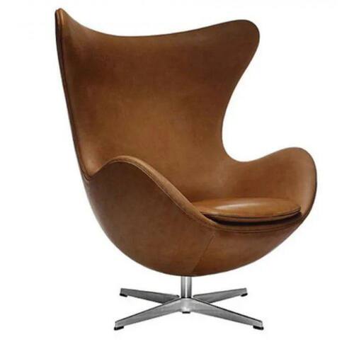 A aclamada Poltrona Egg, foi desenhada em 1958. Arme Jacobsen projetou o Hotel Royal SAS, de Copenhagem, e criou a cadeira especialmente para o hotel. A cadeira recebeu este nome devido a sua geometria, parecida com um ovo. É um dos projetos mais conhecidos do profissional e símbolo de sofisticação urbana. Descrição Concha em fiberglass preenchido com poliuretano expancivo e revestimento em tecido, couro ecológico. Base em alumínio fundido polido com regulagem tipo relax para inclinação.