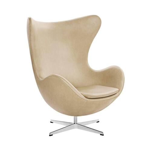 AS IMAGENS SÃO MERAMENTE ILUSTRATIVAS E PODEM SOFRER VARIAÇÕES DE COR E PEQUENOS DETALHES DE ACORDO COM O SEU MONITOR, ILUMINAÇÃO DO AMBIENTE E ATÉ MESMO A SUA PERCEPÇÃO VISUAL.Poltrona Egg sem Puff Base AlumÃnio em Sued Bege