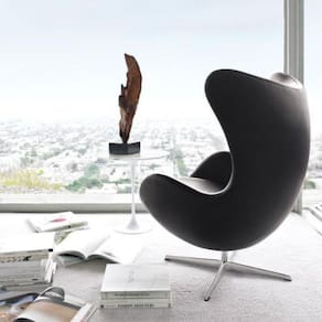 A Egg Chair, desenhada por Arne Jacobsen em 1958, é um ícone do design moderno e um exemplo clássico da estética funcionalista escandinava. Originalmente concebida para o lobby do hotel SAS Royal em Copenhague, a poltrona Egg é reconhecida por sua forma única e envolvente, que lembra a casca protetora de um ovo, proporcionando privacidade e conforto ao usuário.