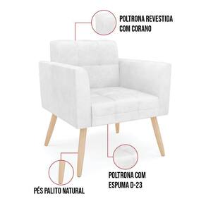 Você gosta de colecionar vários momentos memoráveis com sua família e amigos? Que tal recebê-los, com móveis de altíssima qualidade que só a DRossi tem? A Poltrona Elisa é adequada para você! Seu design retrô é a grande tendência do momento. Pode ser usada em diversos espaços da casa, em salas, hall de entrada, quartos, cozinhas, varanda, sacada, escritório, dentre outros. Contém as seguintes características: A estrutura é feita de madeira de Eucalipto 100% de reflorestamento, e os Pés Palito Natural, além de serem resistentes e duráveis, suportam em média até 120 kg. Assento, encosto e braços, contém enchimento de espuma D-23 e é estofada em tecido Corano, que oferece muito conforto e resistência ao sentar, com aquela sensação de maciez e aconchego. Possui também, detalhes de costura no encosto e assento, resultando em um acabamento impecável, conferindo muito mais valor e elegância ao seu espaço. Para complementar a decoração com essa linda poltrona, a dica é utilizar mantas, almofadas ou vasinho de flor. E pronto, seu cantinho estará perfeito para descansar e relaxar! Aqui, você encontra várias opções, para que seus amigos e familiares se sintam acolhidos. Garanta já sua Poltrona.