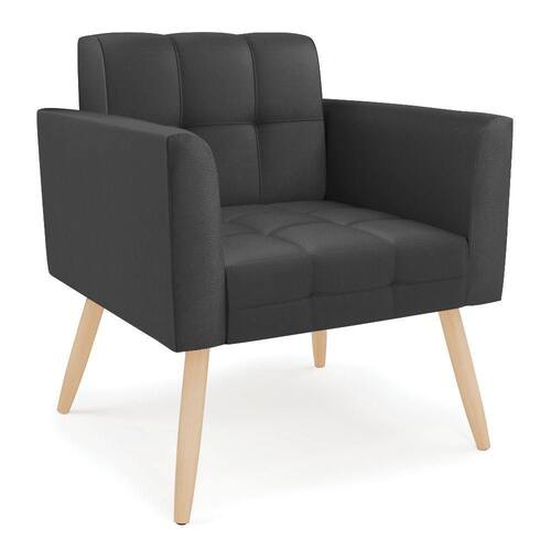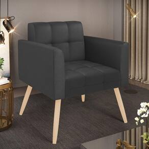 Você gosta de colecionar vários momentos memoráveis com sua família e amigos? Que tal recebê-los, com móveis de altíssima qualidade que só a DRossi tem? A Poltrona Elisa é adequada para você! Seu design retrô é a grande tendência do momento. Pode ser usada em diversos espaços da casa, em salas, hall de entrada, quartos, cozinhas, varanda, sacada, escritório, dentre outros. Contém as seguintes características: A estrutura é feita de madeira de Eucalipto 100% de reflorestamento, e os Pés Palito Natural, além de serem resistentes e duráveis, suportam em média até 120 kg. Assento, encosto e braços, contém enchimento de espuma D-23 e é estofada em tecido Corino, no tom Preto, que oferece muito conforto e resistência ao sentar, com aquela sensação de maciez e aconchego. Possui também, detalhes de costura no encosto e assento, resultando em um acabamento impecável, conferindo muito mais valor e elegância ao seu espaço. Para complementar a decoração com essa linda poltrona, a dica é utilizar mantas, almofadas ou vasinho de flor. E pronto, seu cantinho estará perfeito para descansar e relaxar! Aqui, você encontra várias opções, para que seus amigos e familiares se sintam acolhidos. Garanta já sua Poltrona.