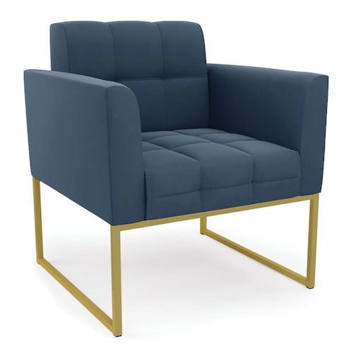 Você gosta de colecionar vários momentos memoráveis com sua família e amigos? Que tal recebê-los, com móveis de altíssima qualidade que só a D'Rossi tem? A Poltrona Elisa é adequada para você! Seu design retrô é a grande tendência do momento. Pode ser usada em diversos espaços da casa, em salas, hall de entrada, quartos, cozinhas, varanda, sacada, escritório, dentre outros. Contém as seguintes características: A estrutura é feita de madeira de Eucalipto 100% de reflorestamento, e a Base Industrial Metálica Dourada, além de ser resistente e durável, suporta em média até 120 kg. Assento, encosto e braços, contém enchimento de espuma D-23 e é estofada em tecido Suede, no tom Azul Marinho, que oferece muito conforto e resistência ao sentar, com aquela sensação de maciez e aconchego. Possui também, detalhes de costura no encosto e assento, resultando em um acabamento impecável, conferindo muito mais valor e elegância ao seu espaço. Para complementar a decoração com essa linda poltrona, a dica é utilizar mantas, almofadas ou vasinho de flor. E pronto, seu cantinho estará perfeito para descansar e relaxar! Aqui, você encontra várias opções, para que seus amigos e familiares se sintam acolhidos. Garanta já sua Poltrona.