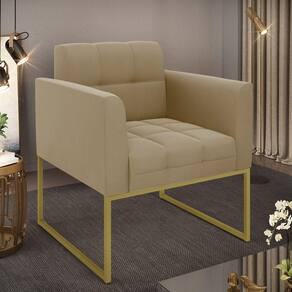 Você gosta de colecionar vários momentos memoráveis com sua família e amigos? Que tal recebê-los, com móveis de altíssima qualidade que só a DRossi tem? A Poltrona Elisa é adequada para você! Seu design retrô é a grande tendência do momento. Pode ser usada em diversos espaços da casa, em salas, hall de entrada, quartos, cozinhas, varanda, sacada, escritório, dentre outros. Contém as seguintes características: A estrutura é feita de madeira de Eucalipto 100% de reflorestamento, e a Base Industrial Metálica Dourada, além de ser resistente e durável, suporta em média até 120 kg. Assento, encosto e braços, contém enchimento de espuma D-23 e é estofada em tecido Suede, que oferece muito conforto e resistência ao sentar, com aquela sensação de maciez e aconchego. Possui também, detalhes de costura no encosto e assento, resultando em um acabamento impecável, conferindo muito mais valor e elegância ao seu espaço. Para complementar a decoração com essa linda poltrona, a dica é utilizar mantas, almofadas ou vasinho de flor. E pronto, seu cantinho estará perfeito para descansar e relaxar! Aqui, você encontra várias opções, para que seus amigos e familiares se sintam acolhidos. Garanta já sua Poltrona.