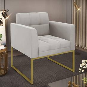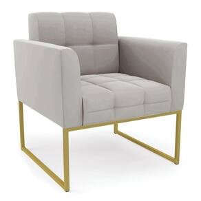 Poltrona Elisa Veludo Base Metálica Industrial Dourado - D\\'rossi Cor Cinza