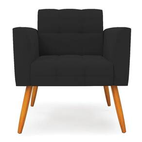 Poltrona Elisa Veludo Preto Pés Palito Castanho - D'rossi