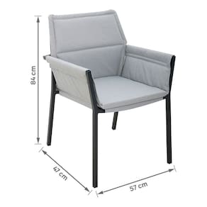 Resumo das caracteristicas e especificacoes: - Produto: Poltrona para Jardim - Uso Indicado: Para Refeicao - Material da Estrutura: Aluminio - Material do Encosto: Polipropileno - Material do Assento: Espuma - Cor: Cinza - Acompanha Braco: Sim - Dobravel: Nao - Reclinavel: Nao - Empilhavel: Sim - Capacidade de Peso: 160 Kg - Dimensoes: 84x57x47 cm - Colecao: Orion Delta - Estilo: Contemporaneo - Marca: Naterial - Areas Indicadas: Externas com Cobertura - Montagem: Desmontado - Garantia do Fabricante: 60 meses - Atencao: Acompanha apenas a poltrona. Marca: Não Informado