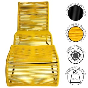 Fabricada totalmente em aluminio, ela recebe uma pintura eletrostatica que garante maior resistencia a intemperies, evitando ferrugem e prolongando sua vida util. O acabamento e feito com Cordao Fibra Sintetica, material de alta qualidade que resiste bem ao sol, tornando-a ideal para areas externas como varandas, jardins ou piscinas. Ela tem capacidade para suportar ate 120 kg, o que a torna confortavel e segura.