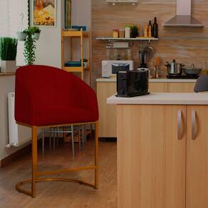 Poltrona Estilo Banqueta Decorativa Mia Suede Base Metal Bronze - Estopar - Vermelho