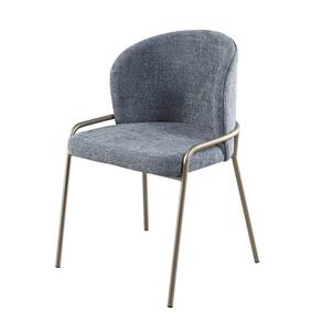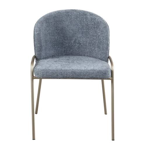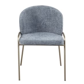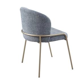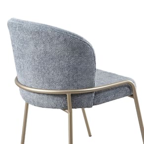 Poltrona Estofada com Base Fixa em Aço Carbono Pintura Automotiva – Liz Exclusiva Linho Aveludado Azul Ônix - Champanhe Automotivo -