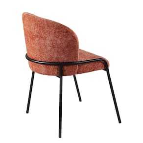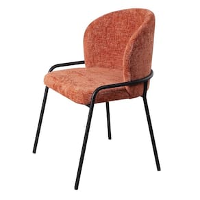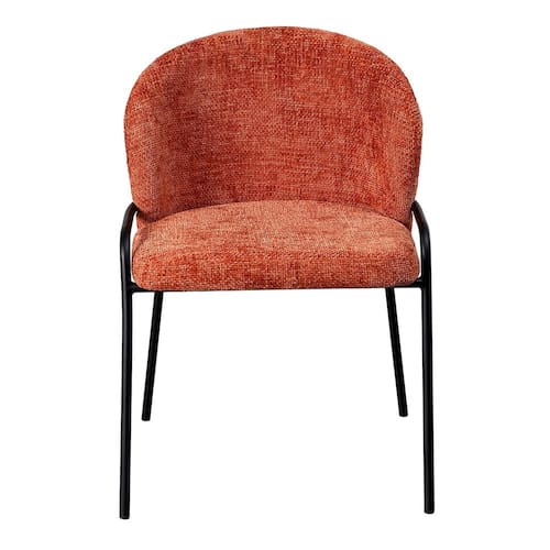 Poltrona Estofada com Base Fixa em Aço Carbono Pintura Epóxi – Samy Exclusiva Linho Aveludado Terracota - Preto Fosco Epóxi -