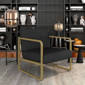 Poltrona Estofada Dinamarca Estilo Industrial Dourado/sued Preto - M.a