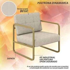 Poltrona Estofada Dinamarca Estilo Industrial Dourado/suede Bege - M.a