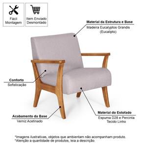 Poltrona Estofada Em Madeira Maciça Cléo Cinza Claro Straub Web