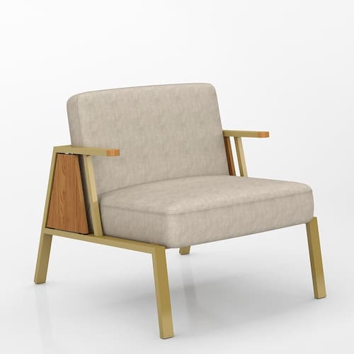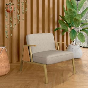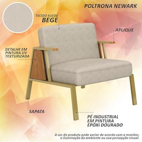 Detalhes Técnicos da Poltrona - Assento e Encosto Tapeçados, Estofados e Fixos - Espuma do Assento e do Encosto: D20 - Tonalidade: Dourado/Cinamomo/Suede Bege - Material: Estrutura em Metalon | Detalhe braço em MDF - Medida Poltrona: A: 72CM x L: 73CM x P: 85CM - Medida do chão até o assento: 42cm de altura - Poltrona suporta até 120KG - Montagem: Difícil