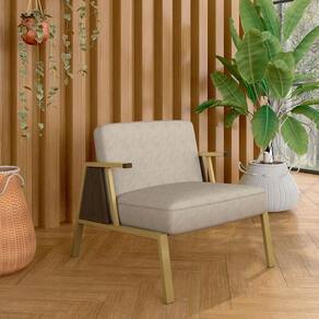 Detalhes Técnicos da Poltrona - Assento e Encosto Tapeçados, Estofados e Fixos - Espuma do Assento e do Encosto: D20 - Tonalidade: Dourado/Imbuia/Suede Bege - Material: Estrutura em Metalon | Detalhe braço em MDF - Medida Poltrona: A: 72CM x L: 73CM x P: 85CM - Medida do chão até o assento: 42cm de altura - Poltrona suporta até 120KG - Montagem: Difícil