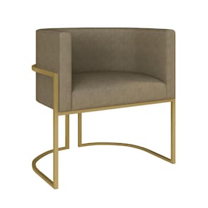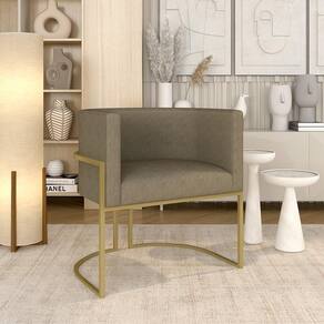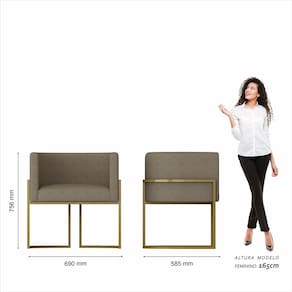 Detalhes Técnicos das Poltronas - Assento e Encosto Tapeçados, Estofados e Fixos - Espuma do Assento e do Encosto: D20 - Tonalidade Estrutura: Dourado - Tonalidade Assento: Suede Capuccino - Material: Metalon - Medida Poltrona: A: 75,6CM x L: 69CM x P: 58,5CM - Medida do chão até o assento: 48,5cm de altura - Poltrona suporta até 120KG
