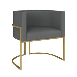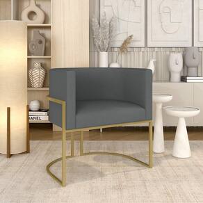 Detalhes Técnicos das Poltronas - Assento e Encosto Tapeçados, Estofados e Fixos - Espuma do Assento e do Encosto: D20 - Tonalidade Estrutura: Dourado - Tonalidade Assento: Camurça Cinza - Material: Metalon - Medida Poltrona: A: 75,6CM x L: 69CM x P: 58,5CM - Medida do chão até o assento: 48,5cm de altura - Poltrona suporte até 120KG