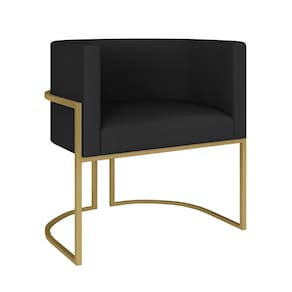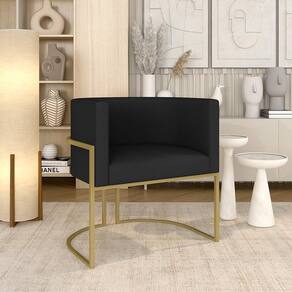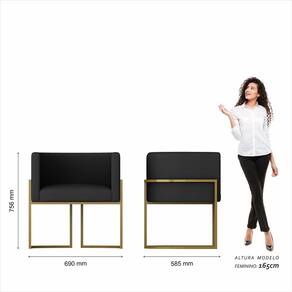 Detalhes Técnicos das Poltronas - Assento e Encosto Tapeçados, Estofados e Fixos - Espuma do Assento e do Encosto: D20 - Tonalidade Estrutura: Dourado - Tonalidade Assento: Suede Preto - Material: Metalon - Medida Poltrona: A: 75,6CM x L: 69CM x P: 58,5CM - Medida do chão até o assento: 48,5cm de altura - Poltrona suporta até 120KG