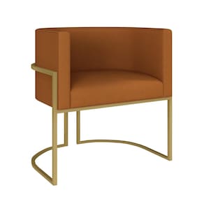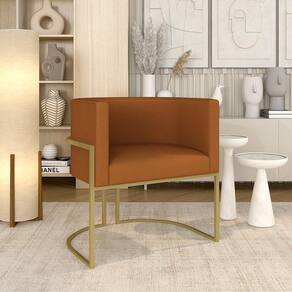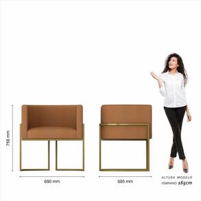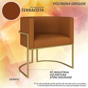 Detalhes Técnicos das Poltronas - Assento e Encosto Tapeçados, Estofados e Fixos - Espuma do Assento e do Encosto: D20 - Tonalidade Estrutura: Dourado - Tonalidade Assento: Suede Terracota - Material: Metalon - Medida Poltrona: A: 75,6CM x L: 69CM x P: 58,5CM - Medida do chão até o assento: 48,5cm de altura - Poltrona suporta até 120KG
