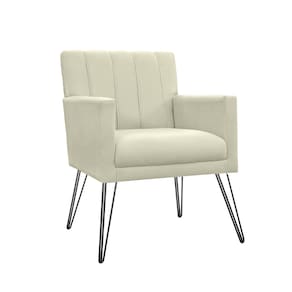 Poltrona Estofada Para Hall de Entrada com Pés de Ferro Cecília Suede Bege - LM DECOR
