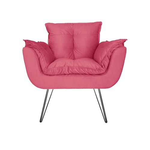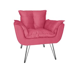 Poltrona Estofada Para Hall de Entrada Com Pés de Ferro Opala Suede Rosa Barbie - LM DECOR