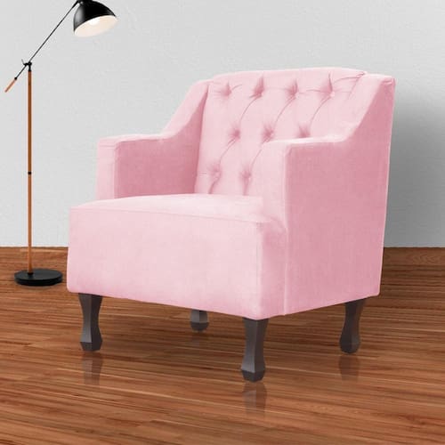 Poltrona Estofada Para Hall de Entrada Genesis Suede Rosa - LM DECOR