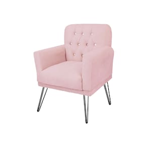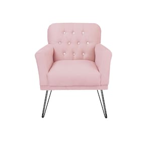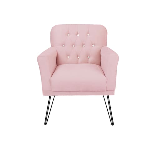 Poltrona Estofada Para Hall de Entrada Pés de Ferro Anitta Corano Rosa Bebe - LM DECOR