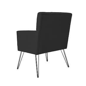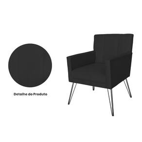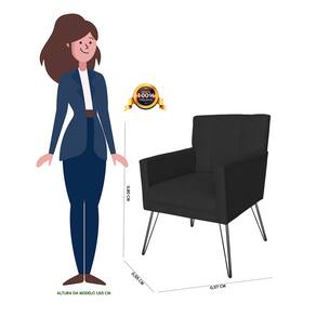 Poltrona Estofada Para Sala de Estar Pés de Ferro Onix Corano Preto - LM DECOR