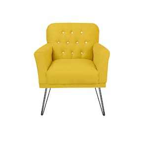 Poltrona Estofada Para Salão de Beleza Pés de Ferro Anitta Suede Amarelo - LM DECOR