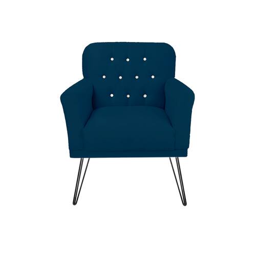 Poltrona Estofada Para Salão de Beleza Pés de Ferro Anitta Suede Azul Marinho - LM DECOR