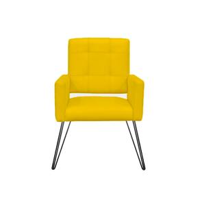 Poltrona Estofada Para Salão de Beleza Pés de Ferro Camila Suede Amarelo - LM DECOR