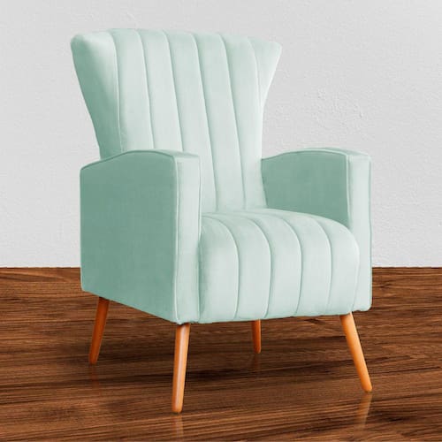Poltrona Estofada Pés Palito Sala de Estar Melinda Veludo Acqua - LM DECOR - Verde Claro