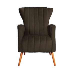 Poltrona Estofada Pés Palito Sala de Estar Melinda Veludo Marrom - LM DECOR