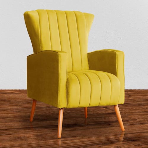 Poltrona Estofada Pés Palito Sala de Estar Melinda Veludo Mostarda - LM DECOR