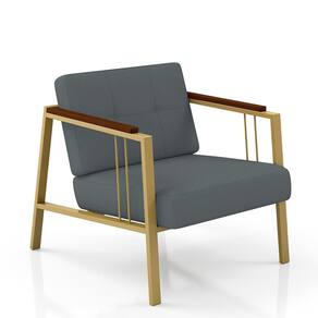Detalhes Técnicos das Poltronas - Assento e Encosto Tapeçados, Estofados e Fixos - Espuma do Assento e do Encosto: D20 - Tonalidade Estrutura: Dourado - Tonalidade Estofado: Suede Cinza - Material: Metalon - Medida Poltrona: A:80CM x L:73CM x P:88CM - Altura do assento ao chão:37,9 CM - Poltrona suporta até 120KG