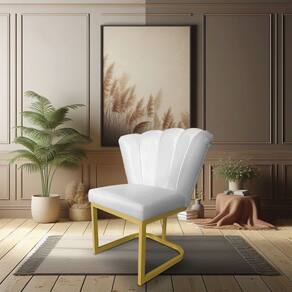 Poltrona Flor Corano Base Metálica Industrial Dourado - Pallazio - Branco