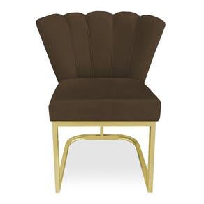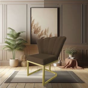 Poltrona Flor Veludo Marrom Base Metálica Industrial Dourado - Pallazio