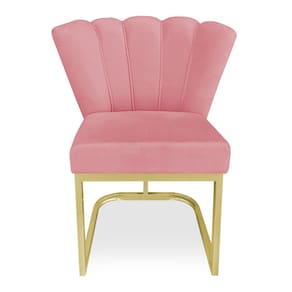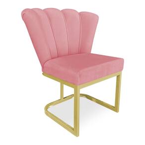 Poltrona Flor Veludo Rosê Base Metálica Industrial Dourado - Pallazio