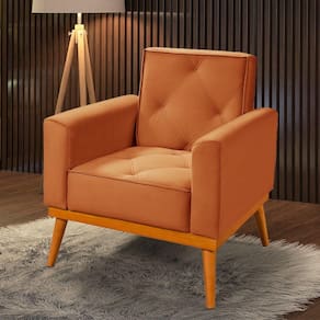AS IMAGENS SÃO MERAMENTE ILUSTRATIVAS E PODEM SOFRER VARIAÇÕES DE COR E PEQUENOS DETALHES DE ACORDO COM O SEU MONITOR, ILUMINAÇÃO DO AMBIENTE E ATÉ MESMO A SUA PERCEPÇÃO VISUAL.Poltrona FlorenÃa Base em Madeira MaciÃa Veludo Terracota