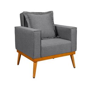 Poltrona Florença Decorativa Base Madeira Maciça Design Conforto Sala de Estar Luxo - Grafite Linho - Cinza