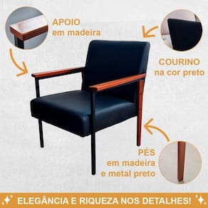 - Tecido: Couro Sintético (PU) na cor Preto;