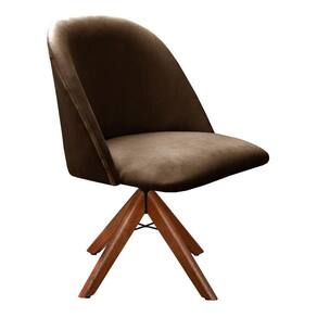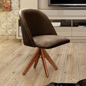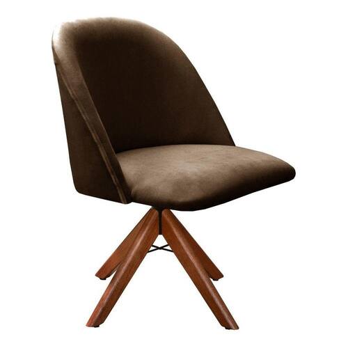 Poltrona Gaia Cadeira Giratória Pé Madeira Decoração Moderna Recepção Escritório - Marrom Escuro
