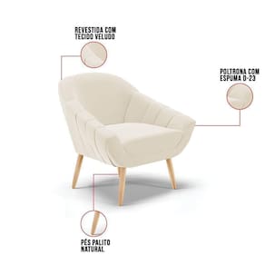 A poltrona Giovana é uma peça indispensável para momentos de descanso depois de um dia longo de trabalho. E não há nada melhor que poder relaxar em um móvel de extremo conforto não é mesmo! Afinal ela dará aquele toque de perfeição ao seu ambiente. Conta com uma estrutura reforçada em madeira eucalipto que oferece alta resistência e qualidade ao móvel. Produzida com Pés Palito Natural que suportam até 120 kg, seu estofamento é com espuma de densidade D-23, revestido em tecido Veludo no tom Bege que contribui para que o assento fique firme por mais tempo. Sua durabilidade e conforto é seu diferencial. Você também amou? Então, é só escolher a Poltrona que tem mais a ver com a sua decoração.