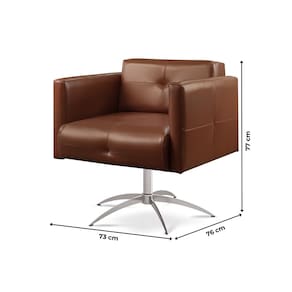 Apresente um toque de sofisticação ao seu ambiente com a poltrona Angra, desenvolvida especialmente para áreas comerciais e salas modernas. Com uma base giratória em alumínio, que oferece robustez e durabilidade, além de ser resistente à corrosão. O assento, revestido em couro sintético de alta qualidade, oferece conforto e fácil manutenção, ideal para ambientes de uso intenso. Sua estrutura, confeccionada em eucalipto e com pés em madeira seca e tratada, garante uma resistência e durabilidade. O assento acolchoado em espuma D28, com design ergonômico, assegura um conforto excepcional. Seja em recepções, escritórios ou como complemento à decoração da sua sala, a poltrona Angra une funcionalidade e design em uma única peça, trazendo elegância e praticidade para qualquer espaço. Acompanha Almofadas extras: Não Acompanha Puff: Não Almofada do assento: Não Possui Almofada do encosto: Fixa Altura do assento até o chão: 47 cm Altura do Encosto: 30 cm Ambiente Principal: Sala de Estar Complexidade da Montagem: Baixa: pode ser montado por uma pessoa sozinha Cor: Marrom Cor do Produto: Marrom Design Assinado: Não Enchimento do Braço: Espuma D-28 Enchimento do Encosto: Espuma D-28 Encosto para a Cabeça: Não Estampado: Não Extensível: Não Itens Inclusos: 1 poltrona angra, parafusos e manual de montagem Linha ou Coleção: Angra Manual de Montagem e Instalação: https://product-hub-prd.madeiramadeira.com.br/931243/documents/763b5ad5-bd12-4e45-a9f0-b0c1f54807bc2272757518817248752850172.pdf Material do Braço: Couro sintético Material dos Pés: Alumínio Modelo de Poltrona: Giratório Necessita Montagem: Sim Origem do Produto: Nacional Peso: 15 kg Possui Percintas Elásticas: Não Possui Pés: 01 Possui Rodízio: Não Recomendações de Uso, Manutenção e Limpeza: Utilizar aspirador de pó, escova com cerdas macias ou limpeza a seco. Não utilizar produtos químicos, abrasivos ou limpeza a vapor. Evitar exposição prolongada ao sol. Sistema de Montagem: Parafusos Suporta Até (kg): 120 kg Tecido Predominante: Couro Sintético Tipo de Assento: Fixo Tipo de Encosto: Fixo Tipo de Espuma do Encosto: Espuma Convencional Tipo de Poltrona: Decorativa Marca: Zurc Decor