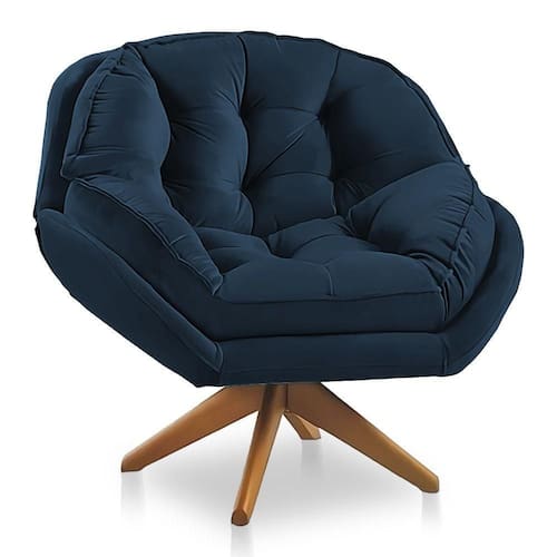 Poltrona Giratória Chicago Veludo Base De Madeira - Pallazio Cor Azul Marinho